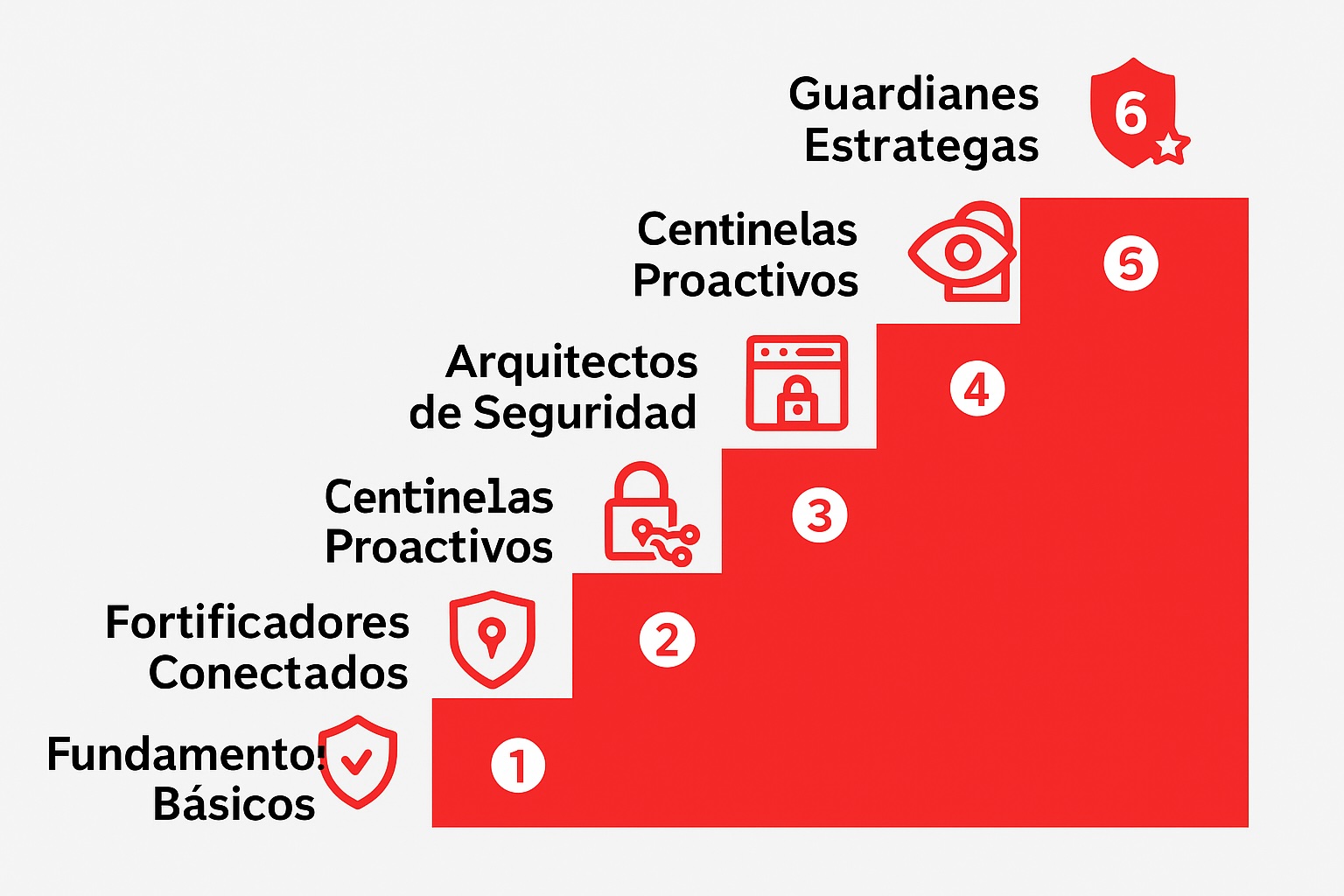 El Framework de Madurez en Ciberseguridad guía a tu empresa en un camino de 6 niveles progresivos, desde los controles básicos hasta la ciberresiliencia total.